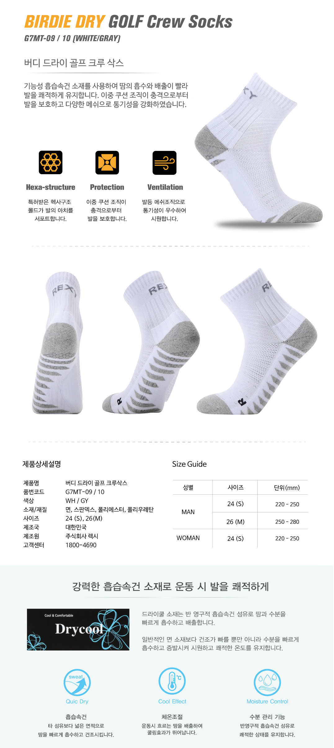 렉시 버디 드라이 골프 크루 화이트/그레이 26(M)