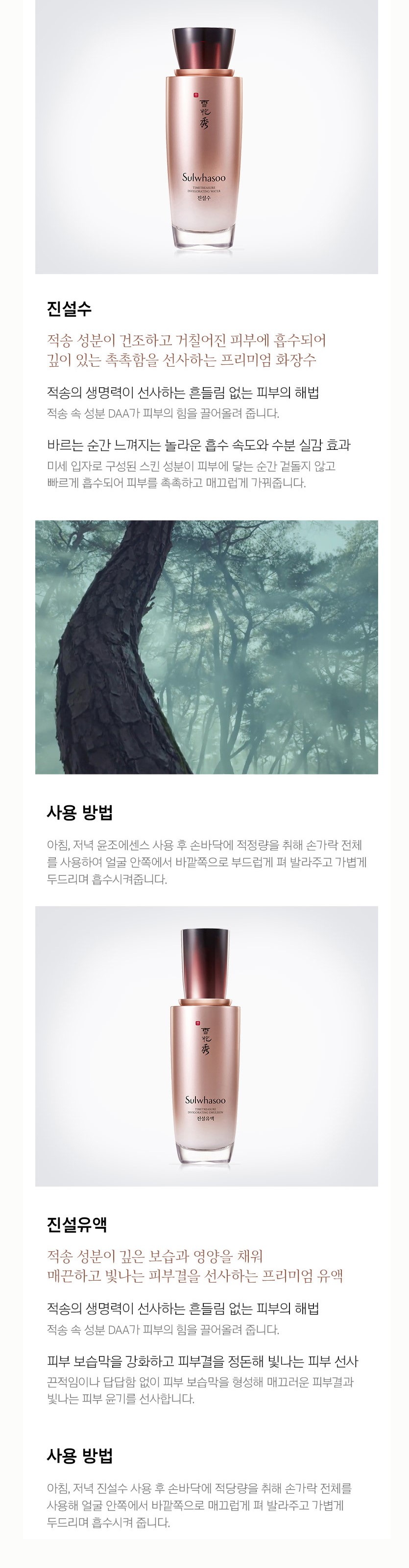 구성: 진설수 25ml, 진설유액 25ml, 진설에센스 4ml, 진설아이크림 3ml, 진설크림 4ml, 윤조에센스8 ml, 자음수 15ml, 자음유액 15ml, 자음생크림 5ml
