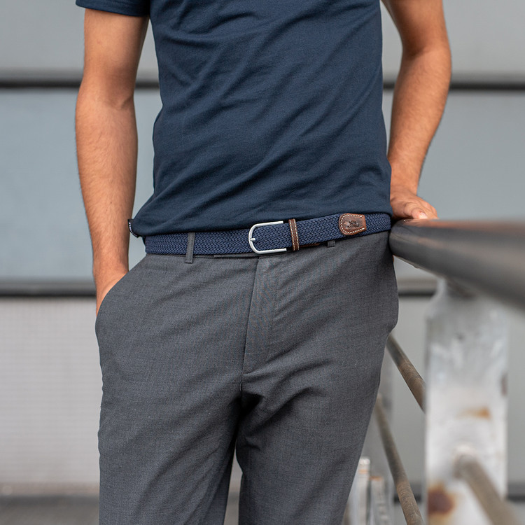 전형적인 가죽 벨트를 대체하는, 모던하면서 캐주얼과 세미 정장과도 잘 어울리는 엘라스틱 벨트.