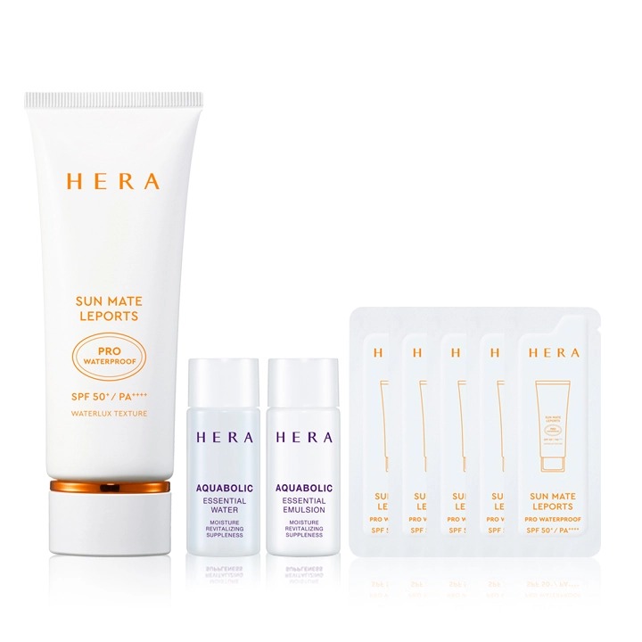구성: 아쿠아볼릭 에센셜 워터, 에멀전 각 15ml + 선 메이트 레포츠 1ml x5