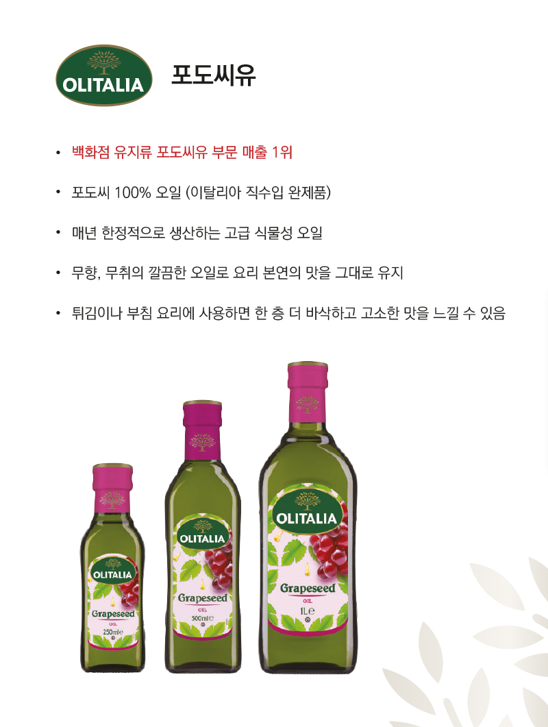 [올리타리아] 올리브유 0.5L + 포도씨유 0.5L (2P세트)